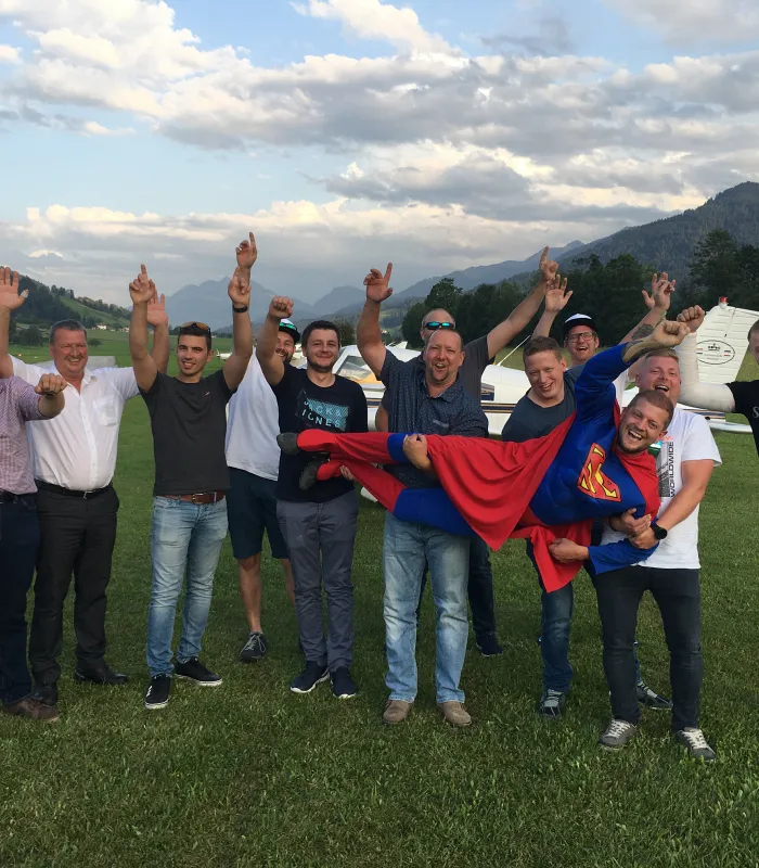 Skydiving minimum 200km/h im Freifall über den Kitzbüheler Alpen. Eine spektakuläre Zeit haben die Junggesellen bei der Abschiedsfeier beim Tandemspringen. So manch Trauzeuge springt oder fliegt mit dem "Bräutigam" mit und hat den Spass seines Lebens. Ob von Innsbruck, Salzburg oder München, ein Fallschirmsprung hier in Tirol ist immer eine besondere Geschenkidee mit Bewegung und Adrenalin.